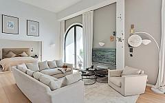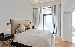 The apartment includes 2 spacious bedrooms featured with 2 en-suite bathrooms, a fully-equipped open space kitchen, delightful sea-view dining and living area continuing to elegant arch shape terraces, one of which is furnished with 2 classy comfortable armchairs and table, another one with sun bed so you can enjoy your day with spectacular views of the French Riviera coast. On the second floor there is a dressing room, a work studio with library and a laundry. The interior was created by Ralph Laurent interior designers. The apartment also includes a double garage, two parking spaces and a cellar.